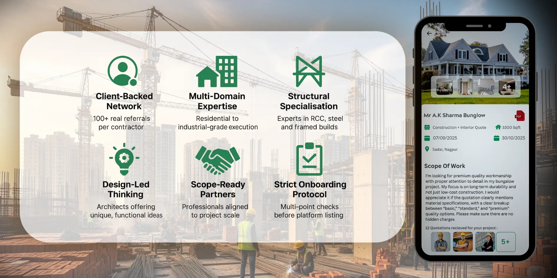 Once your project is uploaded, verified contractors and professionals will review your requirements and send their quotes. You can compare prices, timelines, and work quality in one simple view.